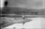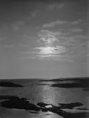 Havsbadet med Varmbadhuset till vänster. Enligt text som medföljde bilden: "Prof. Curmans villa o. kyrkan från sjön."