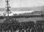 Text på kortet: "Parad på Backamo, Bohusläns reg:es mötesplats. Bohuslän, 1890-talet".
