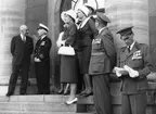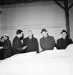 Landshövding Conrad Jonsson, Överbefälhavare Helge Jung och Generaldirektör Gustaf Dahlbeck på väg in i Salpeterfabriken i Köping.