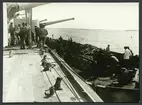 Utlyft av förstäven till A19 ubåten på lastpråm. Närmast identisk bild: V134250 och V314252, ej skannade.