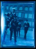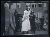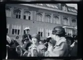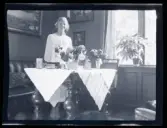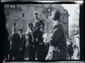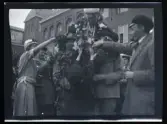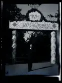 Leonarth Morthensen bland uppvaktningsbuketter blommor.