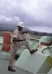 Mansporträtt, man stående i helfigur iklädd lotsuniform med skärmmössa. Ateljébild.