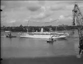 Enligt text som medföljde bilden: "Lustjakt bogseras."