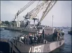 Lossning av Amerikabåten Kungsholm. Lyftkranar.