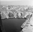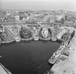 Fotografi från Karlskrona förmodlingen 1898. I bakgrunden under mastkranen ligger den avrustade ångkorvetten SAGA.