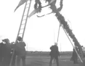 Resning av midsommarstång vid midsommarfirande i Brevens bruk, 1960-tal