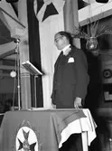 Typograf Hjalmar Johansson hälsar välkommen på IOGT:s samkväm för beredskapsinkallade soldater på Upplands Regemente, I 8