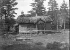 "Garvare-Gustavs" stuga. Uppförd av störar, mossa och lera omkring 1920 öster om "Korpeklvekôl" på Stora Ruds marker i Örs socken.