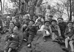 Foto av ett barn och en kvinna. Text vid bild i album: "Agneta m. mamma, 1953".