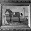 Oljemålning föreställande ryttm greve C A C Lewenhaupt (Sjö-Claes) på hästen Putbus.