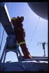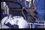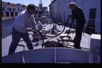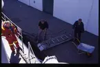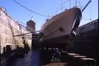 Musei robotbåten VÄSTERVIK bogseras ifrån Marinmuseum i Karlskrona till Hasslö båtvarv för renovering/ommålning.