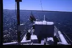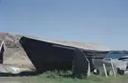 Musei robotbåten VÄSTERVIK har bogserats ifrån Marinmuseum i Karlskrona till Hasslö båtvarv för renovering/ommålning.