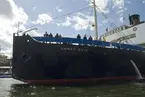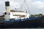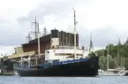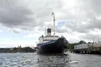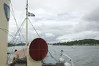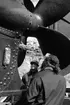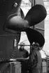 Del av isbrytaren Sankt Eriks aktre maskin. I bild maskinchief, maskintelegraf och panel med tryckmätare.
