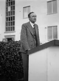Intendent Nils Ålenius vid Upplandsmuseet föreläser, Uppsala 1946