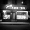 Bilden föreställer Vivo-butiken i centrala Vintrosa. Rubrik för negativbild: "forts Polisen kör högertrafik". 1 september 1967.