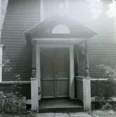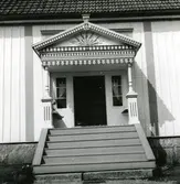 En förstukvist vid en mangårdsbyggnad i Alfta. Förstukvisten är rikt dekorerad.