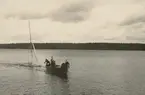 De båda männen t v är, liksom båten, oidentifierade. T h ses med cigarett och KSSS-mössa Evert Taube.