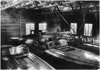 Två oidentifierade officerare i uniform m/1910, en äldre man och en pojke i motorbåt. Kalmar regemente.