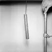 Stereobild av huvudgatan, trapporna i Mt. Haruna, de varma källornas stad, Ikao, Japan. Man bär ok med vatten.