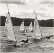 Besättningen på 30-S177 KORYBANT, som 23-24 juli 1942 vann The Marblehead Trophy under seglingar arrangerade av Stockholms Segel Sällskap. Bilden är tagen på sällskapets brygga vid Rastaholm vid Södra Björkfjärden. Fr v t h på bilden ses rorsman Oscar Plym, Conny Looft, Nils Nilsson och Alf Wallin.