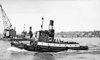 Värta hamn. Statens Järnvägar, SJ. Ombyte av koltänder, SJ svängkranar flyttas medelst pontonkran.