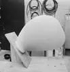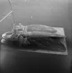 Ett man står vid däcket till ett enmotorigt propellerplan märkt med Tre kronor och "30".