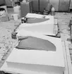 Två män står vid vingen till ett enmotorigt propellerplan. Två andra män står på vingen. Flygplanet är med märkt med Tre kronor samt "22".