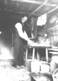 Interiör från rökeriet 1914. Kvinnor och barn i arbete. Annie Eriksén drev fotofirma tillsammans med sin man P. A. Eriksén i Skövde, Ulricehamn och Vänersborg. Barnen Dagmar, Hilda, Harald, Söborg och Anton Eriksén var också fotografer.