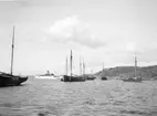 Enligt text som medföljde bilden: "Torpedbåtarne Meteor o. Komet vid Bojen tagna fr. veranda. Lysekil 16/9 1899 Hugo Hallgren."