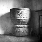 Blidsberg sn. Dopfunt med runinskrift från Blidsbergs kyrka. Anders Rolands samling.