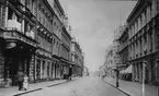 Ronnebygatan från öster 1867 i bakgrunden det Bergqvista huset vid Borgmästaregatan.