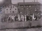 Enligt text som medföljde bilden: "Lysekil, Engelbert, Valter Haglund m.fl. på Lyckes brygga 30/7 1907."