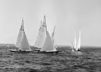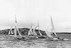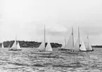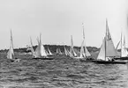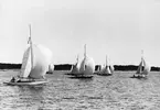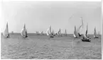 Evert Taube under Sandhamnsregattan 1942 i sin folkbåt F-S74 CARMENCITA AV SJÖSALA.