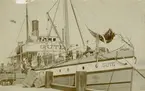 Kathammarsvik 1910. Kalkstenslastage med 2 km lång linbana från stenbrottet.