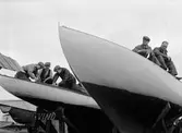 Medlemmar i Ekolns Segelklubb vid deras första lottbåt, sjösatt i Fyrisån, Uppsala den 15 juni 1923