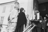 Intendent Gösta Webe vid utställningen av skulpturer från Vasa i Sjöhistoriska museets minneshall.