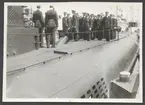 Bilden visar ubåten Illern i övervattensläge med manskap på däck.