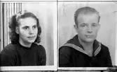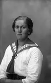 Porträtt av en ung kvinna med studentmössa och sjömansblus.
