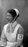 Fotografi av en kvinna i sjuksköterskedräkt.