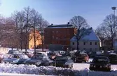 Fotodokumentation av byggnader på Marinbasen. Skeppsgossekasernen i Karlskrona uppfördes 1878 - 1881 och ritades av arkitektbröderna Axel och Hjalmar Kumlien. Byggnaden planerades för 400 skeppsgossar. 1939 upphörde byggnaden att tjänstgöra som kasern. Byggnaden blev Marinmuseum mellan 1953 - 1997.