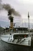 Sommarbild Gustavsbergsbåt med Skeppsholmskyrkan i bakgrunden.