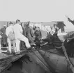 Vraket av en motorjakt under upphuggning på J. Dahlkvists slip. Ångermanland, Nordingrå tingslag och socken, Barsta.
