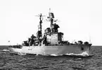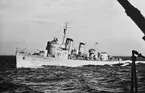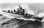 Bilden visar stadsjagaren Stockholm till sjöss i full fart.