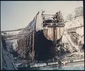 Uppland, Stockholms län, Frötuna skeppslag, Länna socken, Vettershaga. Vedjakten Adalia: akterskeppets underdel. Foto i juni 1950.