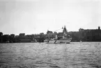 Den tyske kejsaren Wilhelm II:s ångjakt HOHENZOLLERN fotograferad i Stockholm den 3 augusti 1908.