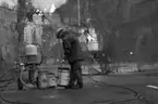Reflektion av kran i vattenpöl på botten av Gustav V:s torrdocka, Beckholmen, Stockholm.
