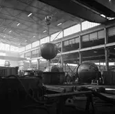 Oskarshamns varv. Nya stapelbädden. Svetshallen sedd från insidan av varvet.
