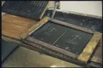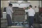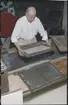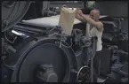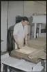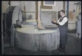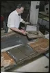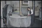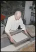 Man som står vid en isvak med rep runt midjan övar på livräddning. I bakgrunden syns kronohäktet och slup- och barkarskjulet.