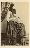 "Femme jouant du tambour en terre cuit"