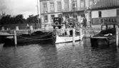 Taxistationen, Storgatan, Karlsborg. Taxibilarna uppställda utanför med resp. Chaufför. Endast neg finns.